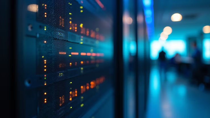 Network server rack showing active connections